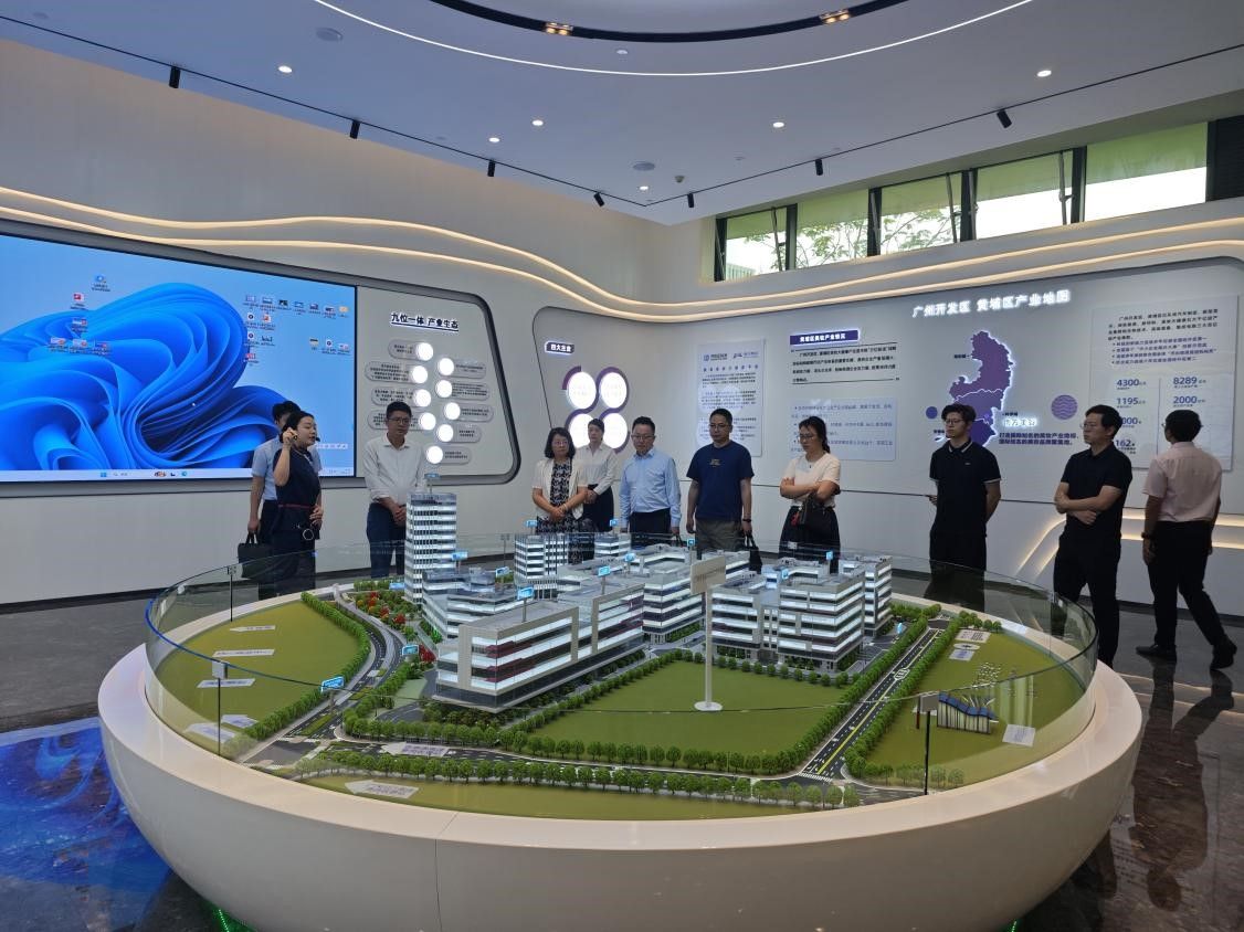 调研团队首先参观了产业园展厅,详细了解园区建设、功能布局、入驻企业情况及未来发展规划。在展厅,团队重点学习了广州市银发经济高质量发展规划、相关促进措施以及“1+N”银发经济产业园区布局等政策内容,并实地考察了产业园的整体建设情况。